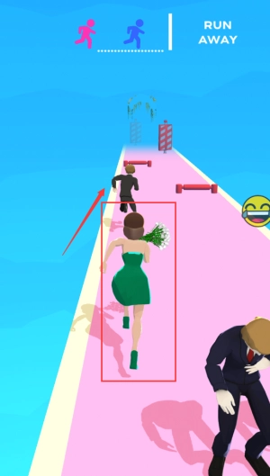通过左右滑动屏幕来操控伴娘移动,沿途收集喜糖与红包,同时避开婚礼上的各类障碍物,在限定时间内到达终点,即可完成该关卡的挑战。
