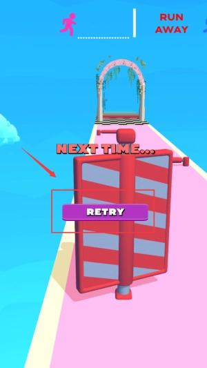 失败后可点击RETRY按钮重新游玩,也可以等待NEXT TIME提示自动结束。
