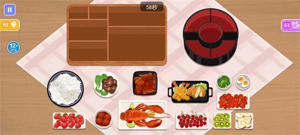 3、小编选择的是美味饭盒,你想要将下方的食物放到对应的饭盒内;