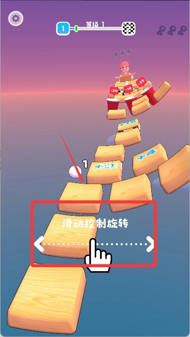 进入关卡后,留意前方的路径走向和障碍排布情况,提前设想好小球的落地点,通过滑动屏幕来控制地面方块的移动方向,以此保证小球能有最理想的落脚位置。