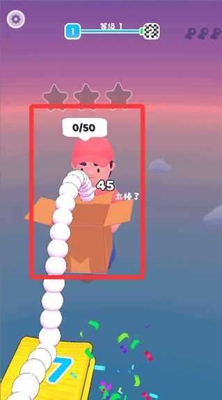 每次成功到达终点的箱子后,就会进入下一个难度更高的挑战;要是因为赶时间或者操作失误没能落到安全方块上,小球就会被抓捕者拦住,得重新尝试。