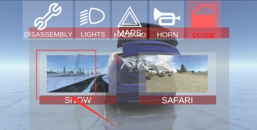 在车库里浏览二十多款专业越野车型,依据赛道的特性挑选出合适的座驾。