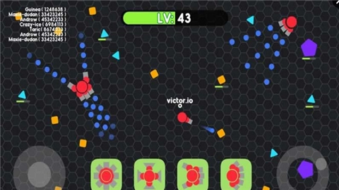 灵活闪避敌方攻击,主动攻击敌人与漂浮方块,拾取散弹、极光等子弹强化自身火力,通过提升等级让坦克进化。