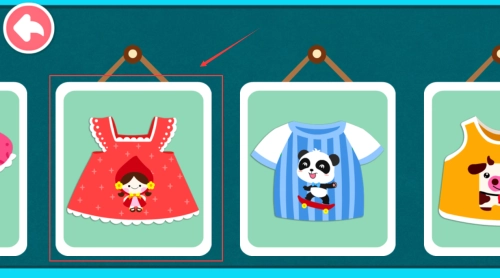 选择红框熊猫角色,按照箭头选取红色布料。