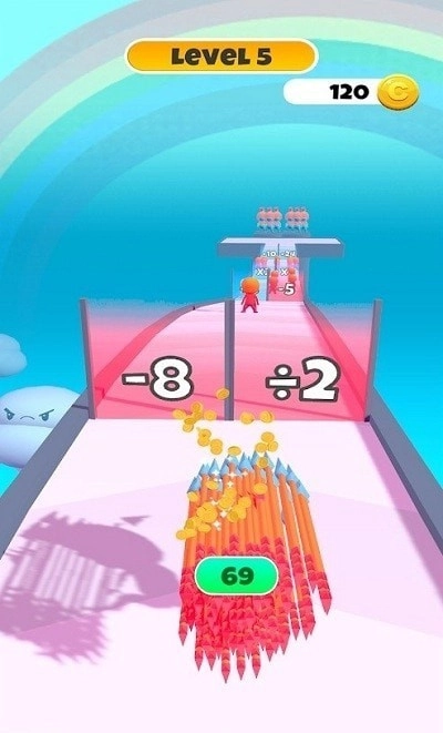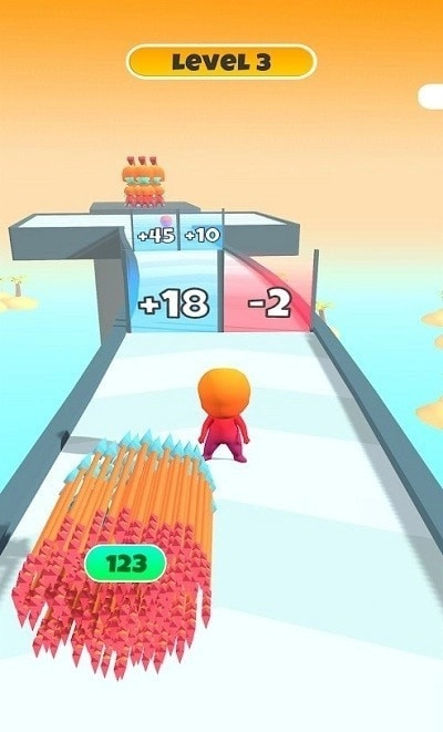 在箭节中玩家需要通过控制各种不同数量的箭。来将路途中的所有障碍物全部清扫干净,并且掉落的金币可以积累,用于兑换更强力的道具,还可以通过各种类似加速门。可以增加箭的数量。