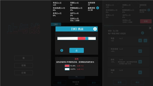《止与战》是一款趣味十足的战斗挑战游戏,整体采用简约设计风格,无论是战场场景还是角色形象,都以简洁利落的线条勾勒而成,色彩运用克制内敛却有着鲜明的辨识度。玩家在游戏过程中,需要不断锻炼自己的反应能力,通过精准把控应对攻击的时机来提升敏捷度;与此同时,还要逐步强化角色的力量、防御等各项属性,推动战斗力稳步提升。最终,在一场场紧张的对抗中从容达成任务目标,尽情体验从生疏到熟练、从弱小到强大的成长蜕变乐趣。
