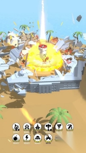 基础玩法为滑动屏幕来瞄准目标,点击即可发射武器摧毁建筑,系统会依据破坏程度给予对应的分数与奖励。