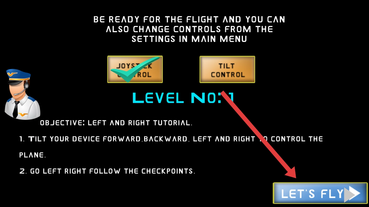 点击“LET'S FLY”即可开启第一关,随后按照提示操控飞机完成左右、前后方向的移动,以此掌握新手阶段的基础操作要点。