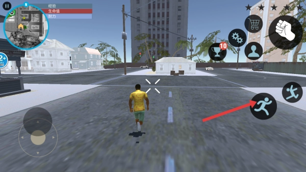商店里的购物车图标能用来购买装备,奖杯图标可以领取任务奖励,要是遇到警察或敌人追击,就得点击拳头图标应对。