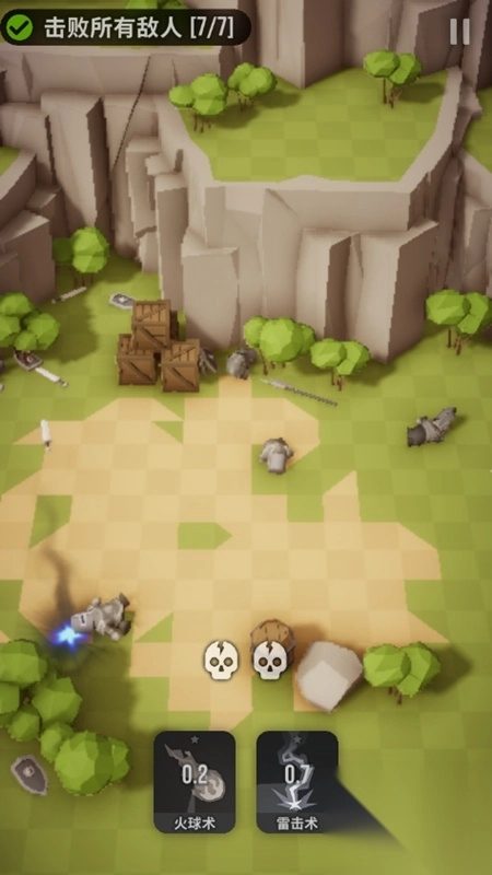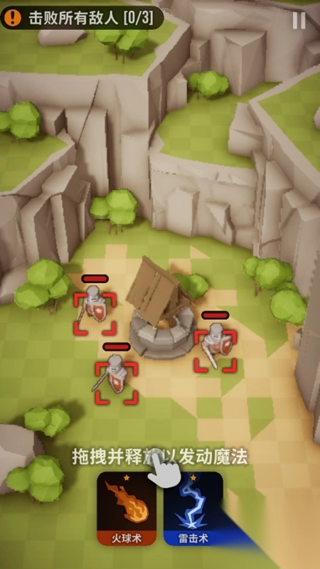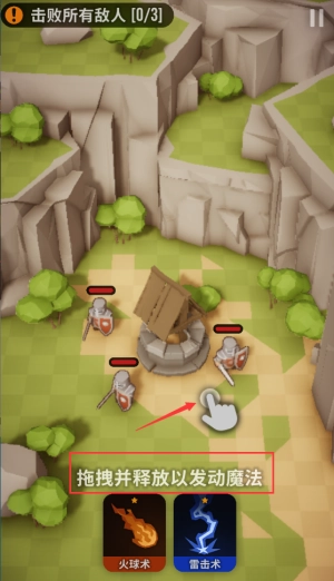 拖拽火球或雷击图标攻击敌人,完成击败任务。