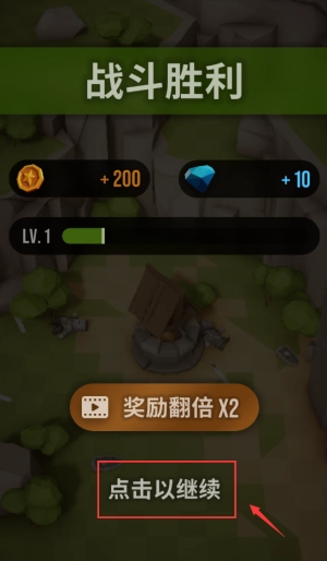 点击红框按钮领取金币和钻石奖励并继续。