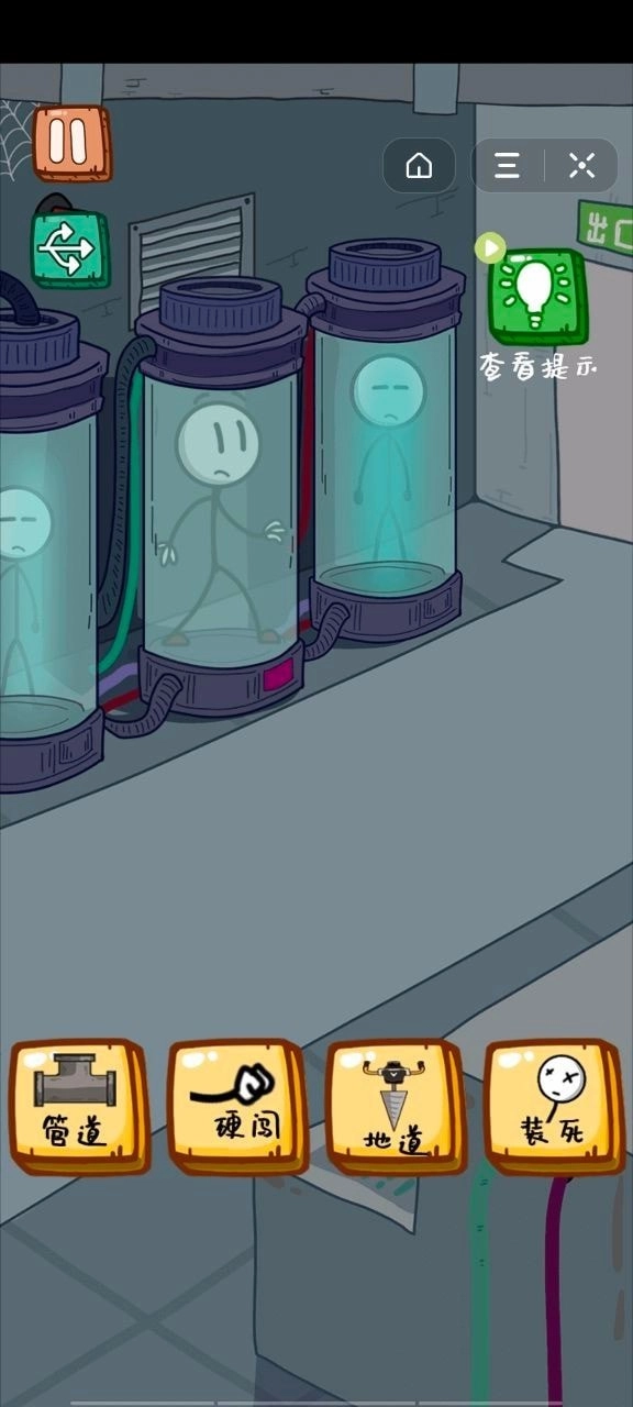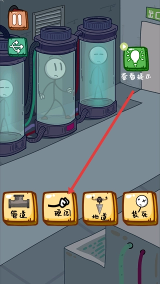 当处于实验室场景中,选择点击硬闯按钮,操控火柴人尝试突破当前所在区域,以此来开启逃生的进程,进而推动逃亡剧情的发展。