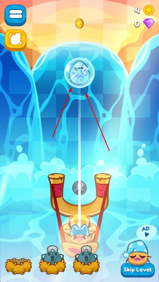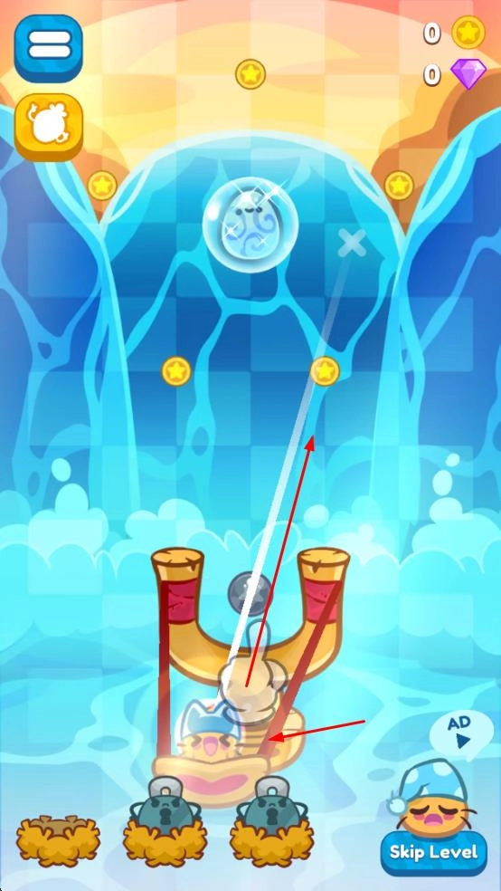 拉动弹弓,瞄准上方的气泡等目标,松开手指发射弹珠,试着击中目标来获取金币,从而推进关卡的进程。