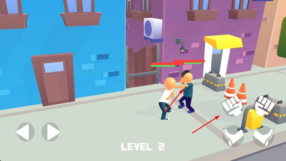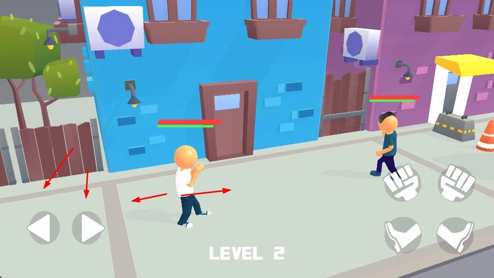 进入LEVEL2等关卡后,你可以通过左下角的方向键操控角色移动,当角色靠近场景里的敌人时,就可以准备进入战斗状态了。