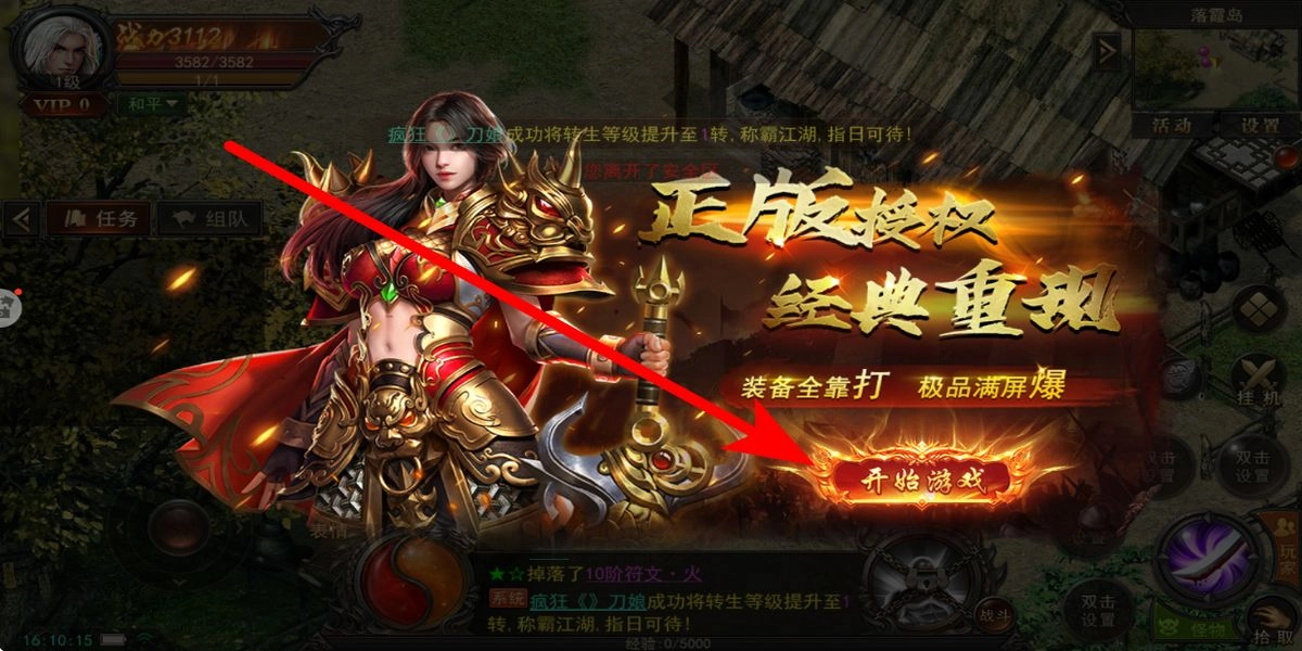 当你完成角色选择与创建后,回到游戏主界面点击“开始游戏”按钮,就能正式进入游戏世界,开启包含打怪爆装、攻城争霸等经典玩法的传奇冒险之旅。