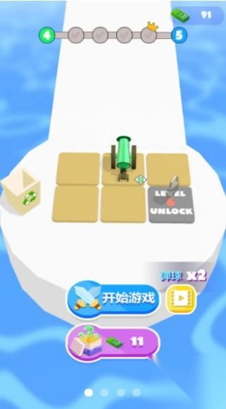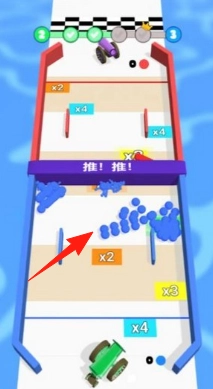 在资源收集的赛道上,你需要拾取蓝色方块,将它们合并后撞击紫色的对手车辆,还可以借助x2或x4的倍数效果来增强撞击时的推力。