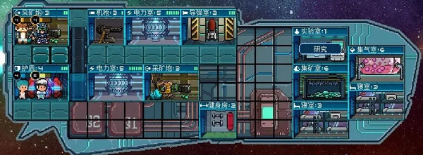 1、游戏里允许玩家自由设计并建造专属飞船,还能通过挑选布置不同类型的房间来增强飞船的整体实力