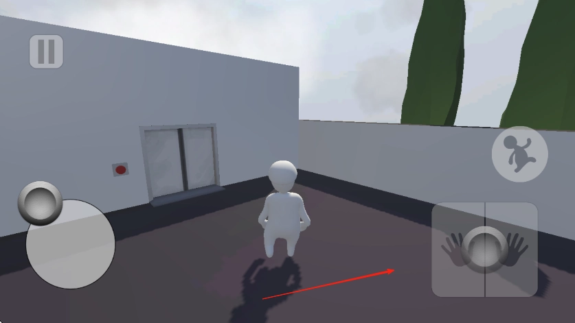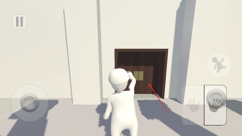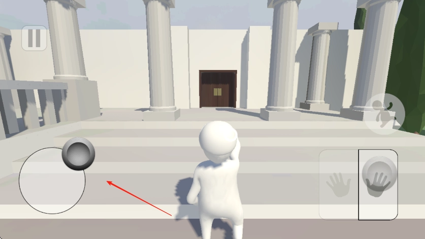 进入游戏后,用左下角的虚拟摇杆操控白色小人移动,朝着前方带有立柱和木门的建筑行进,以此熟悉移动操作。