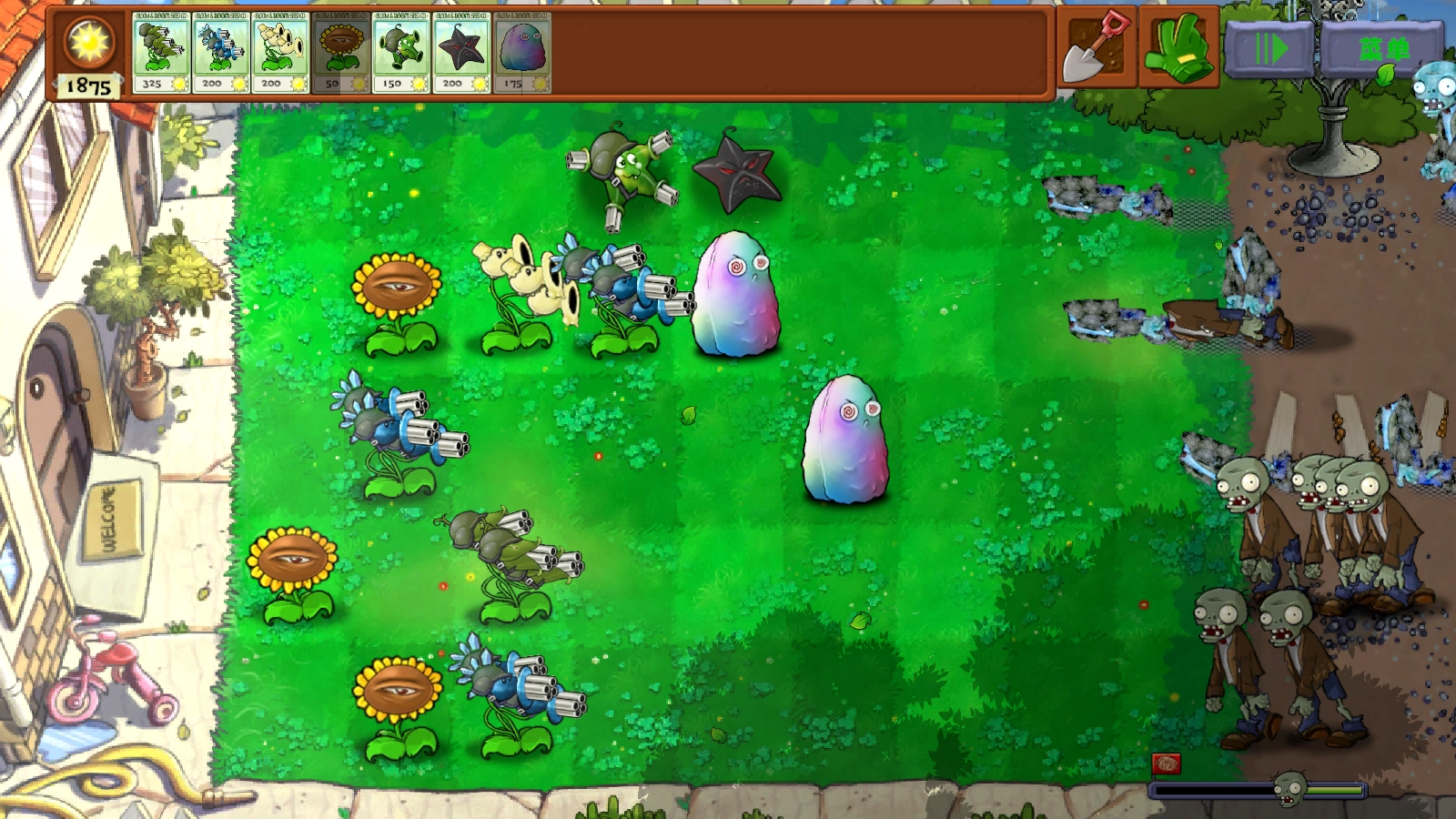 随着关卡不断深入解锁全新植物,根据僵尸的不同特点灵活调整应对策略,合理运用群体攻击或针对空中目标的植物,通过收集金币进行升级来进一步强化防御能力。