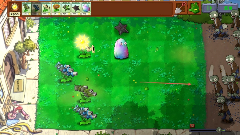 快速部署的策略要点如下:战斗打响后,不必在格子位置上过于纠结,首要任务是在僵尸进攻路线的关键节点布置高输出植物,借助这些植物的超强火力迅速消灭前期出现的僵尸,从而为后续的植物部署争取更多时间。