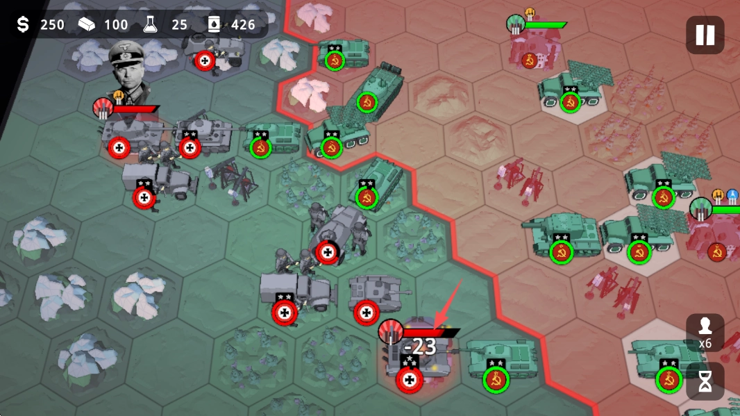指挥我方部队对敌方【星级坦克】发起攻击,利用-23的伤害数值进行压制,以此削弱其作战效能。