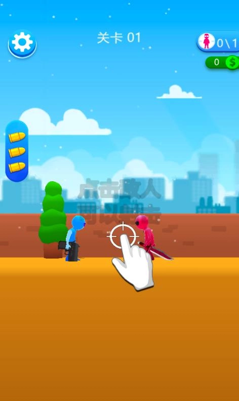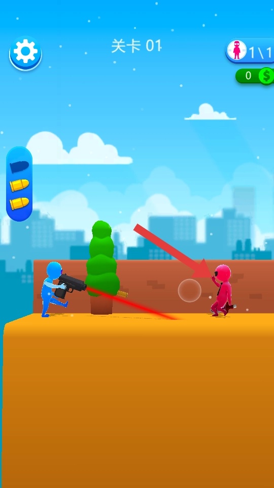 进入关卡01,控制蓝色小人攻击红色敌人,战斗中获取金币,攒够金币就能给角色或武器提升等级,让后面的关卡挑战更轻松。