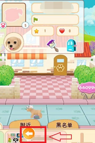4、这时狗栏处会出现一个白色箭头,点击这里就能进入这位朋友的舍堂,里面的狗狗也会出来迎接。