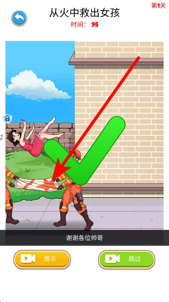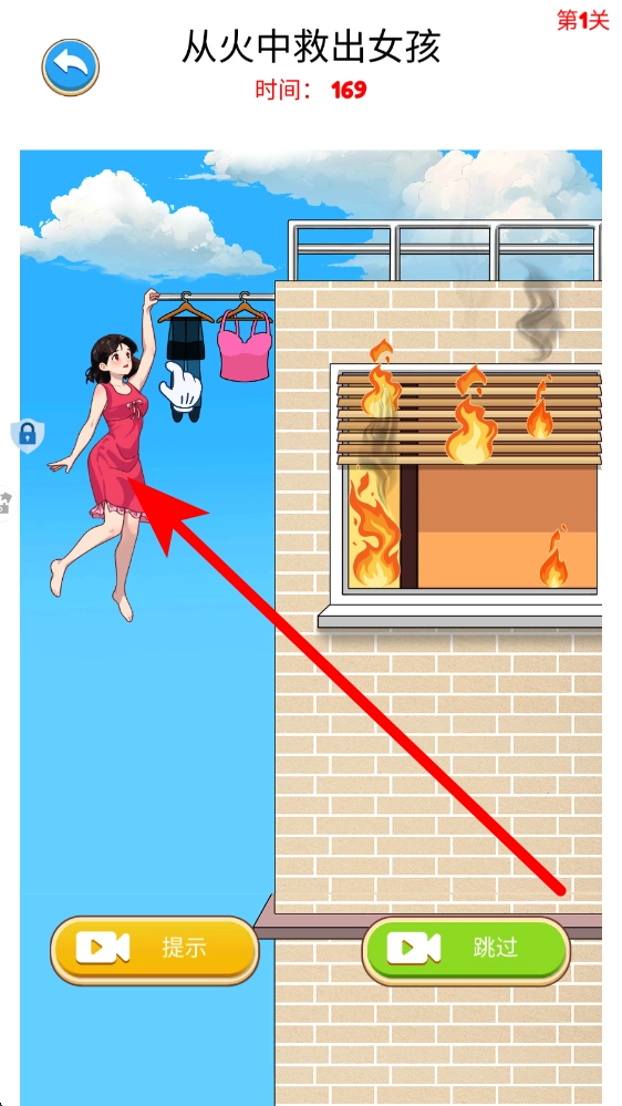 持续进行操作,直至消防救援目标女孩被成功解救,此时会弹出通关提示,说明该关卡已顺利完成,玩家可继续挑战后续关卡。