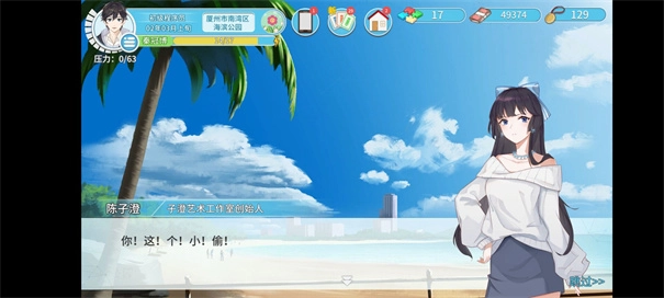 3.(女友)目前可攻略女友有三个分别是陈子澄,赵梦圆,黄萍萍,选择其别的人没有用哦。三名角色中陈子澄和赵梦圆最后牵手进度比较晚,注意每个话题要选对,还可以从地图上其他地方找到她们,和她们对话得知喜欢的物品,然后到商店去买,可以较快的提升好感度,把属性提到要求后,慢慢等剧情。注意:White莲-花不可攻略.和卖茶叶的一样是骗人的。