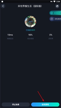 1、在本站异世界慢生活,游戏需加速器启动,打开加速器,找到该游戏,然后点击右侧加速;