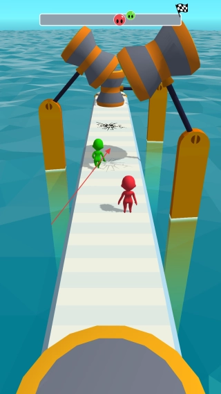 时刻留意前方的障碍物,灵活调整行进路线,抓住对手被摆锤拦截的空档完成超越,尽量保持在赛道中央区域,全力冲向终点线完成关卡挑战。