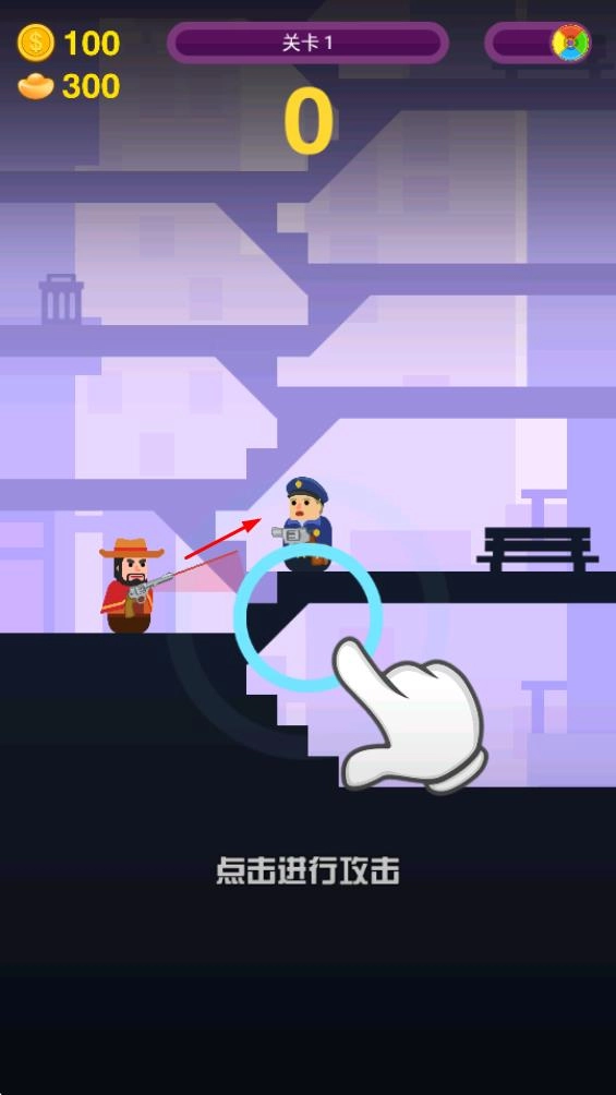 调整角度精准射击:进入关卡后先观察场景内敌人的位置,再通过触屏滑动调整武器射击角度,确认角度合适后触发射击,若未命中则重新调整,反复操作直至消灭当前敌人。