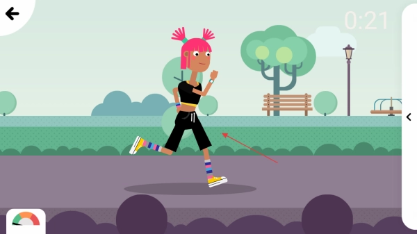 选择之后,角色便会做出对应的健身动作,像跑步这类,并且要注意看屏幕上的计时。