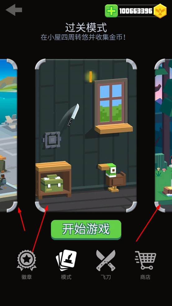 选择过关模式,在小屋周边的场景里开启游戏并收集金币,这是进入游戏的关键步骤。
