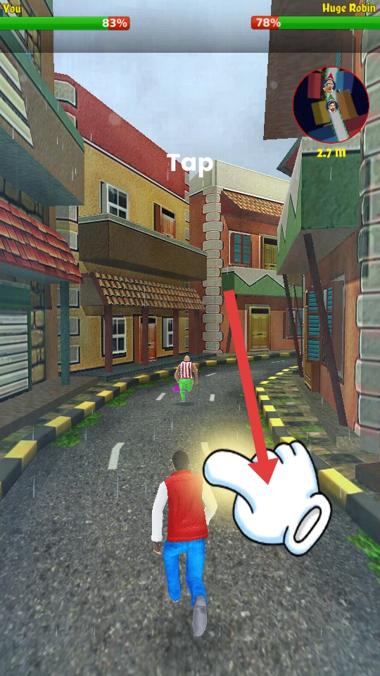 在跑酷的过程中,你需要捡起酒瓶子之类的物品,然后瞄准强盗将其扔出以实施打击;同时,通过不断追逐来缩短与强盗之间的距离。一旦成功抓捕到强盗,即可完成任务并取得胜利。