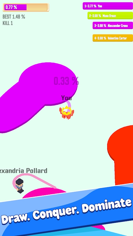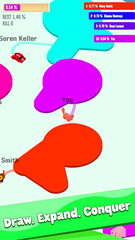 最后阶段围绕地图区域展开争夺,和其他参与者在地图上展开竞争,借助绘制线条等手段,全力抢占更多地图区域,以此提升自己在竞技过程中的表现。
