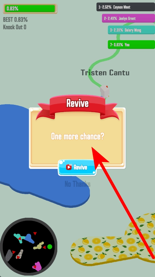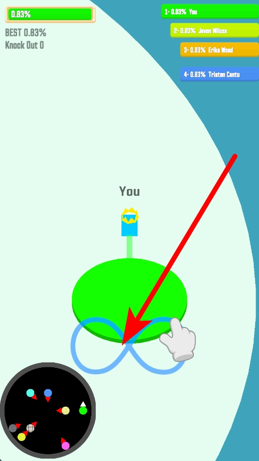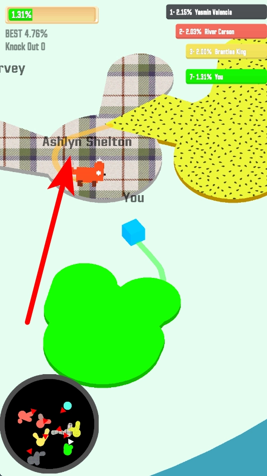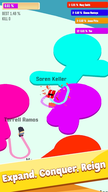 基础圈地玩法:操控角色移动并留下轨迹,当轨迹形成闭合区域时就能占领这片地盘,闭合区域的面积越大,得到的分数就越高,这是游戏里最基础的得分手段。