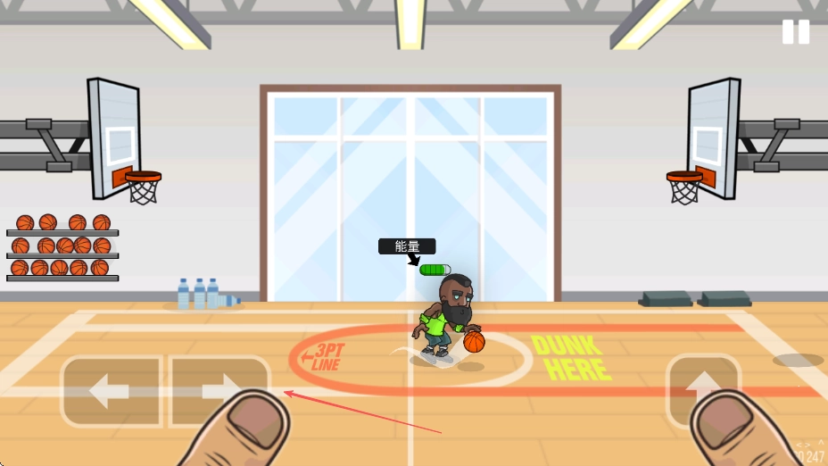 你可以通过操作屏幕下方的左右方向键来控制角色移动,当角色靠近篮球时,篮球会悬浮在角色身边,这样就能获取篮球了。