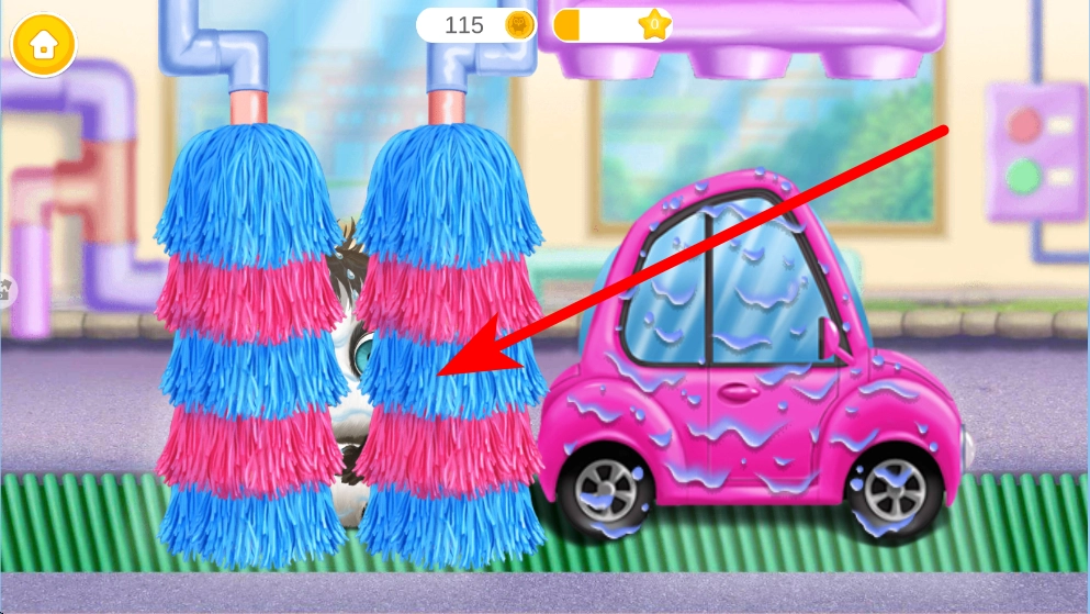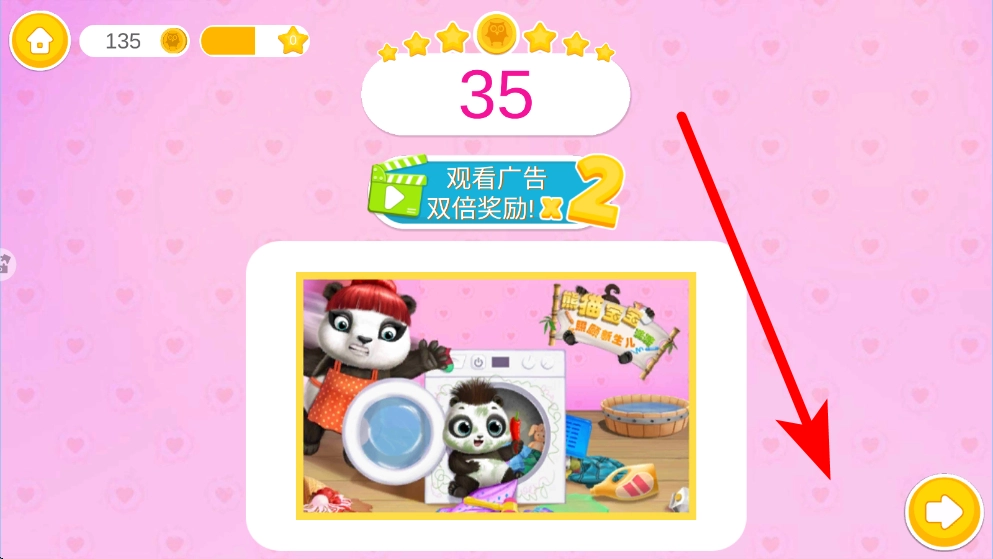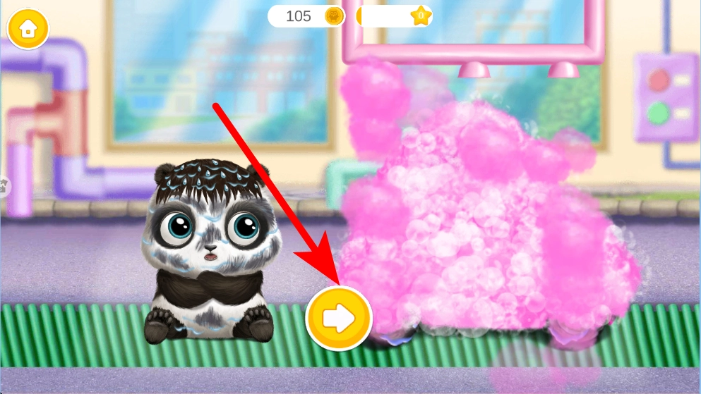 接下来开展清洁工作,当遇到需要清洁的场景时,借助界面里的清洁工具,对熊猫宝宝或者相关物品进行清洁处理,使其维持洁净的状态。