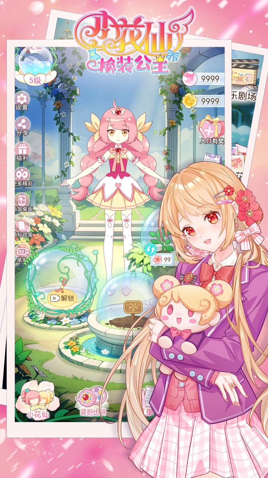 丰富换装系统:海量不同风格的服饰套装可供收集搭配,从梦幻公主裙到可爱日常装应有尽有,打造个性花仙造型的各种需求。