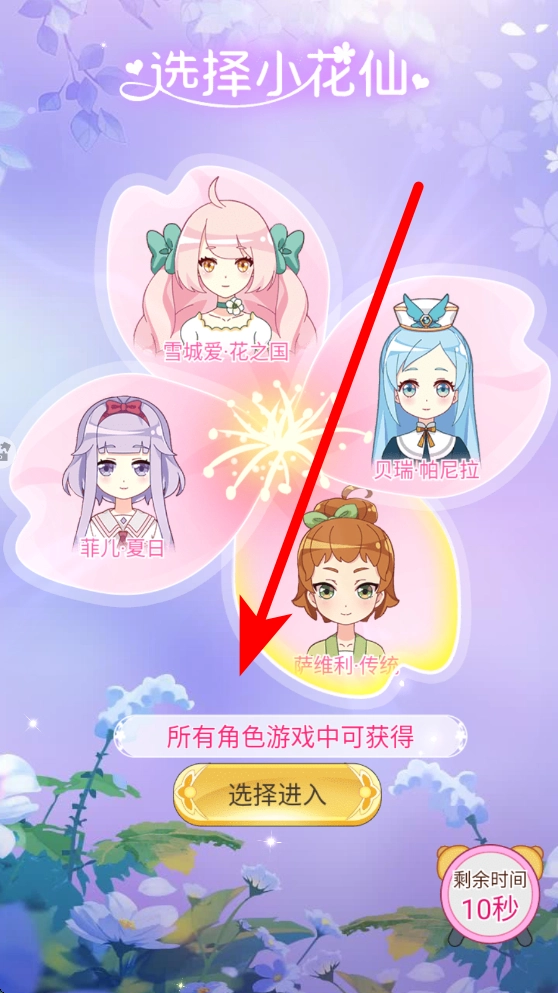 玩家挑选角色时,会进入小花仙选择界面,这里有不少萌趣的小花仙角色任你挑选,选定后点击“选择”按钮,就能进入游戏世界,开启一段奇妙的花仙冒险之旅。