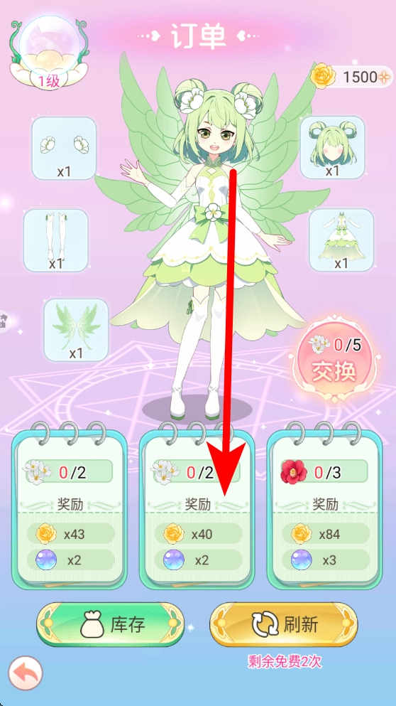 接着完成订单流程,在订单界面中,会呈现各类不同的订单任务。每个订单都要求收集特定数量的物品,完成订单后,你可以获得花朵、宝石之类的奖励,这些奖励可用于角色的培养和成长。