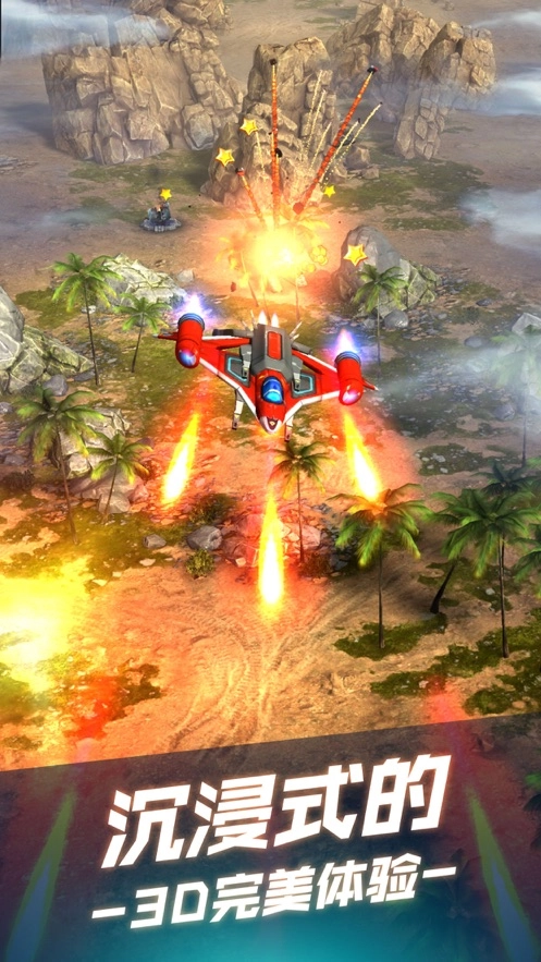 3D卡通画面逼真:采用3D卡通风格呈现,画面效果十分逼真,从战机造型到战场环境都栩栩如生,既能展现卡通的灵动质感,又能通过3D效果营造真实的战斗氛围。
