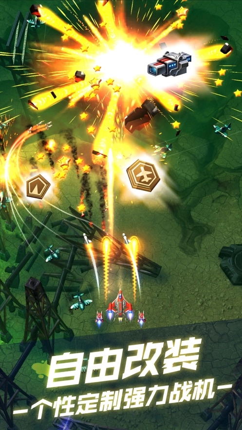 搭配装备叠加技能:给战机配备各类武器,依据战斗局势试着把全新未知的技能叠加运用,探寻炫酷的装备与技能组合效果,在射击战斗里收获更多乐趣与胜利。