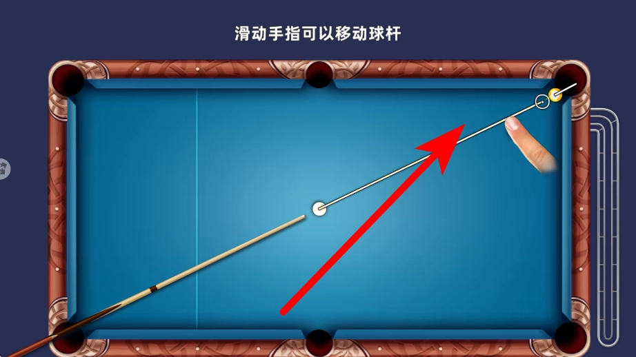 新手玩家可以通过滑动手指来移动球杆,调整其位置,为后续的击球操作做好准备,从而精准击打台球。