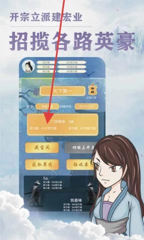 先“立派纳贤”!点击“招揽各路英豪”,3秒就能选定侠客入队,可别随意拒绝资质不错的人才,每成功招揽1人,门派威望就会+5,流程超顺畅,还能解锁“掌门挑战”PVP玩法。