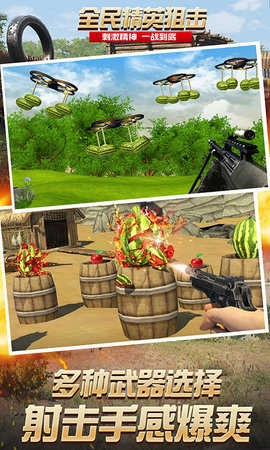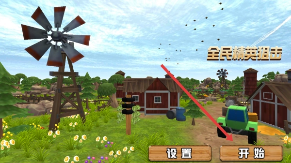 进入游戏主界面后,点击【开始】按钮,即可进入《全民精英狙击》的游戏流程,随后农场场景将开启射击冒险环节。