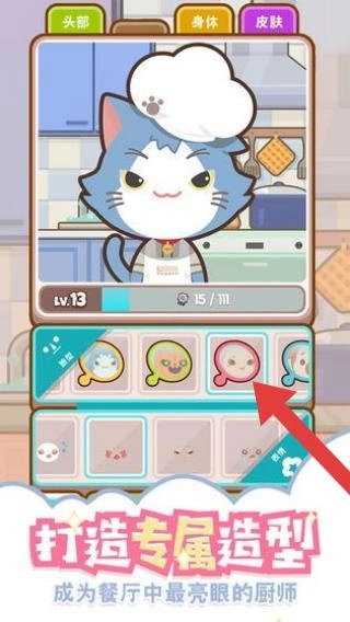 玩家能够打造专属于自己的厨师猫咪形象,通过组合头部、身体、皮肤等不同部件,让猫咪在餐厅里成为引人注目的存在。这是一款休闲模拟经营类游戏,主要围绕餐厅经营和角色装扮的玩法展开。