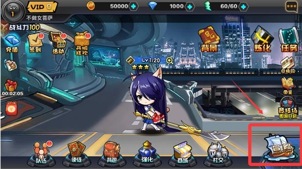 进入游戏后点击右下角冒险按键开始游戏。