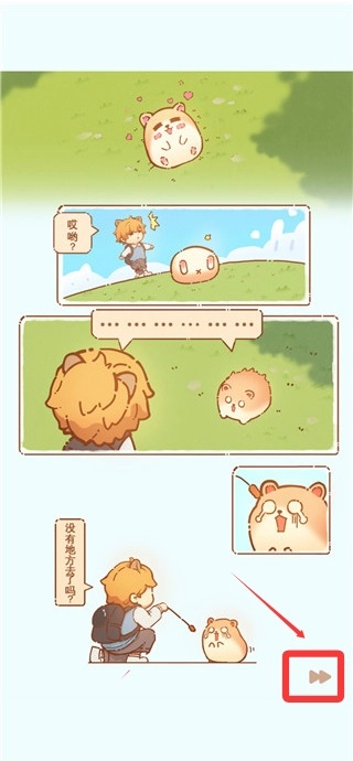 游戏开局用一段漫画介绍背景设定,点击下方按钮就能跳过。